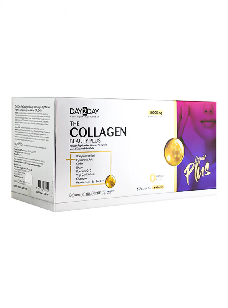 مجتويات شراب كولاجين بيوتي+بلس 30 × 40 مل أمبولات داي تو داي – بنكهة المانجو | Day2Day