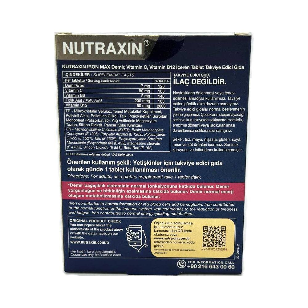 مكمل الحديد القوي مع فيتامين سي 30 قرص Nutraxin Iron Max