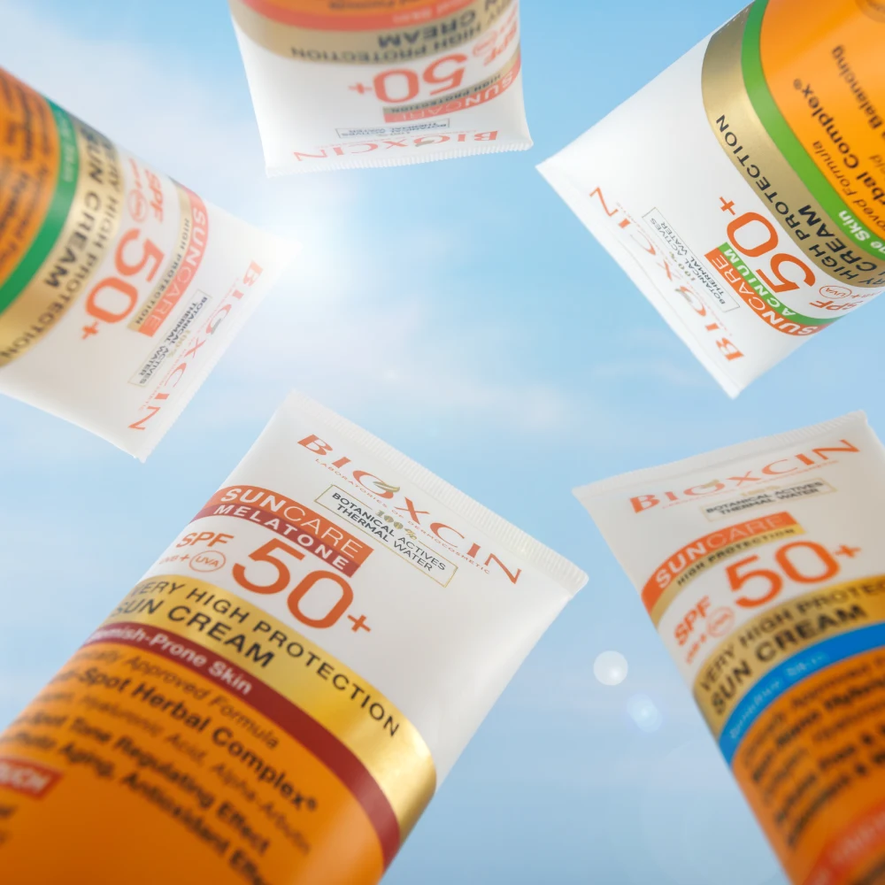 كريم واقٍ من الشمس من سلسلة Sun Care من Bioxcin، يحتوي على عوامل فعّالة للحماية من الشمس و SPF 50+ لحماية عالية من أشعّة UVA و UVB.